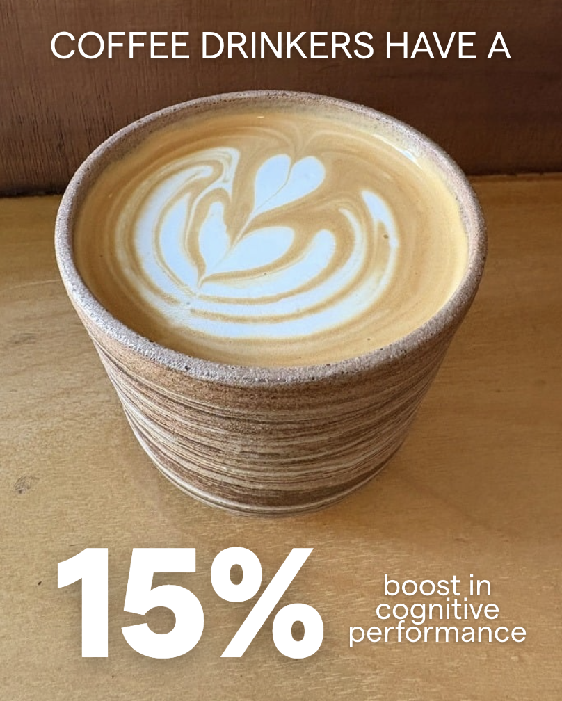 Any coffee drinker will tell you that caffeine improves mental performance. And they’re right, studies show boosts of up to 15% in cognitive performance. A medium to strong coffee - containing roughly 100-300mg of caffeine (around one to two espresso shots) - reliably improves: